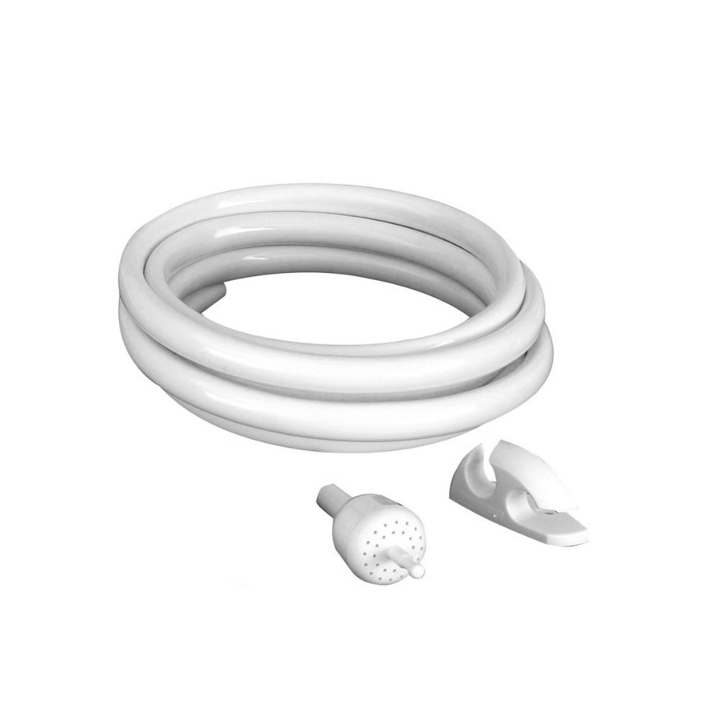 Acompanha mangueira lisa com 1,75m de comprimento e suporte para ducha manual.