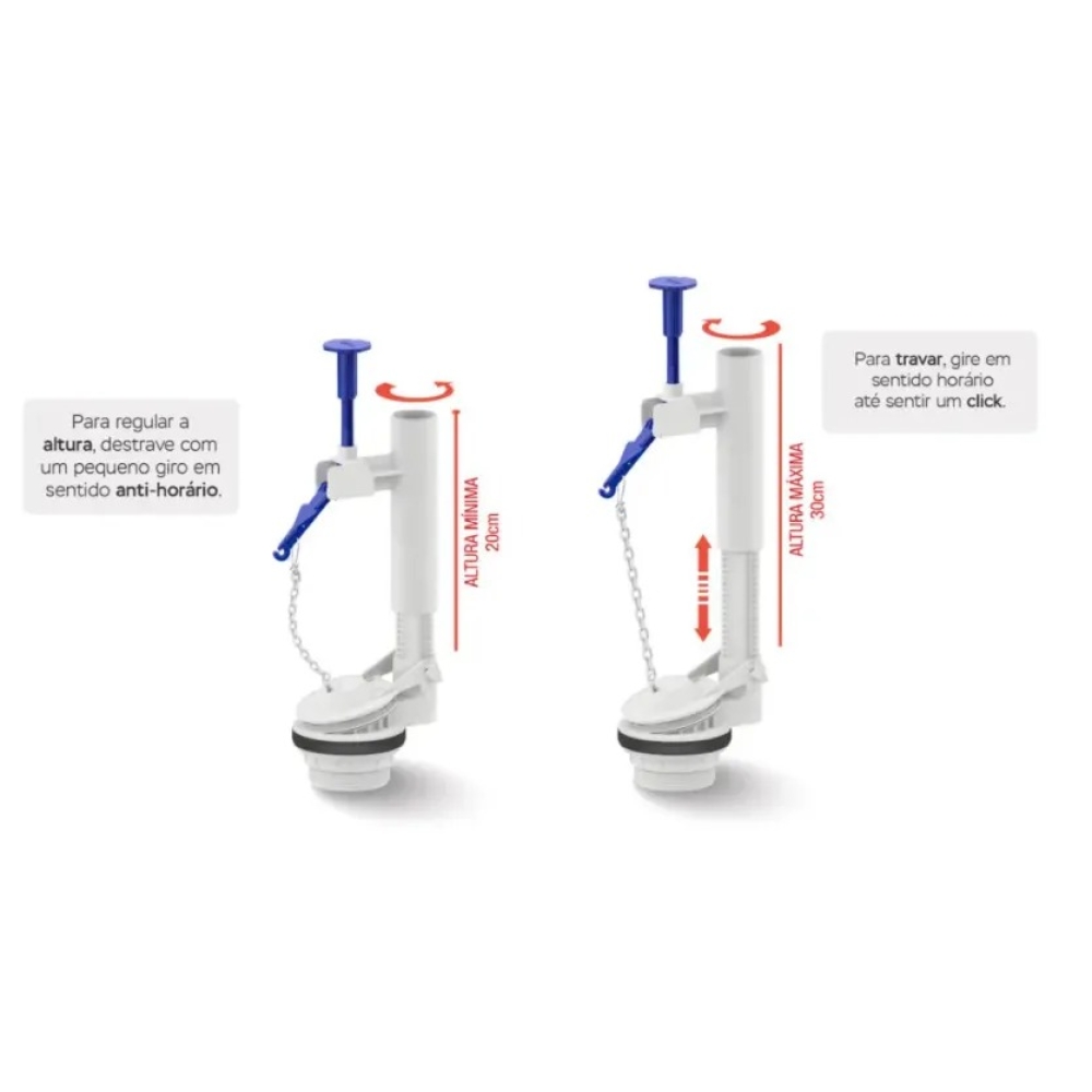 Além disso, o mecanismo possui ajuste para o acionador, garantindo a praticidade e facilidade de uso. Com rosca de saída de 2" (60 mm) e altura do mecanismo de 240 mm a 365 mm, esse produto atende às suas necessidades de forma completa e eficiente. Adquira já a Saida D'agua Convenc. Simpl. Acion. Sup. C/Castelo (9459) Censi e tenha um banheiro moderno e funcional!