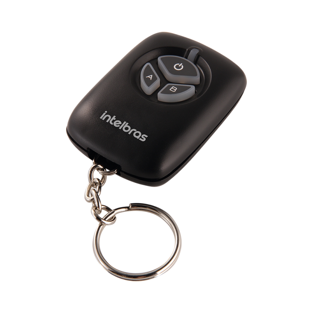O controle remoto XAC 2000 TX, possui bateria de 3 VDC, 3 botões independentes em silicone e design moderno.