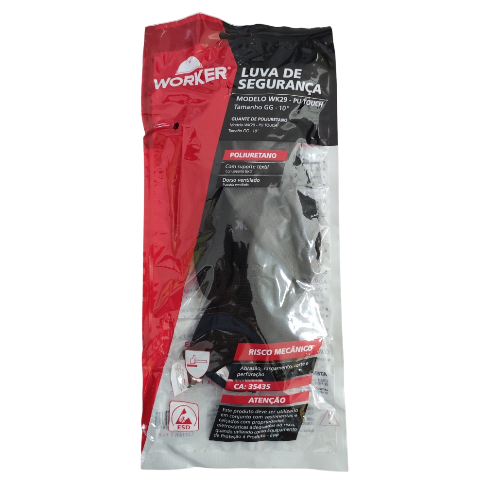 Luva Pu 10" Preta Worker