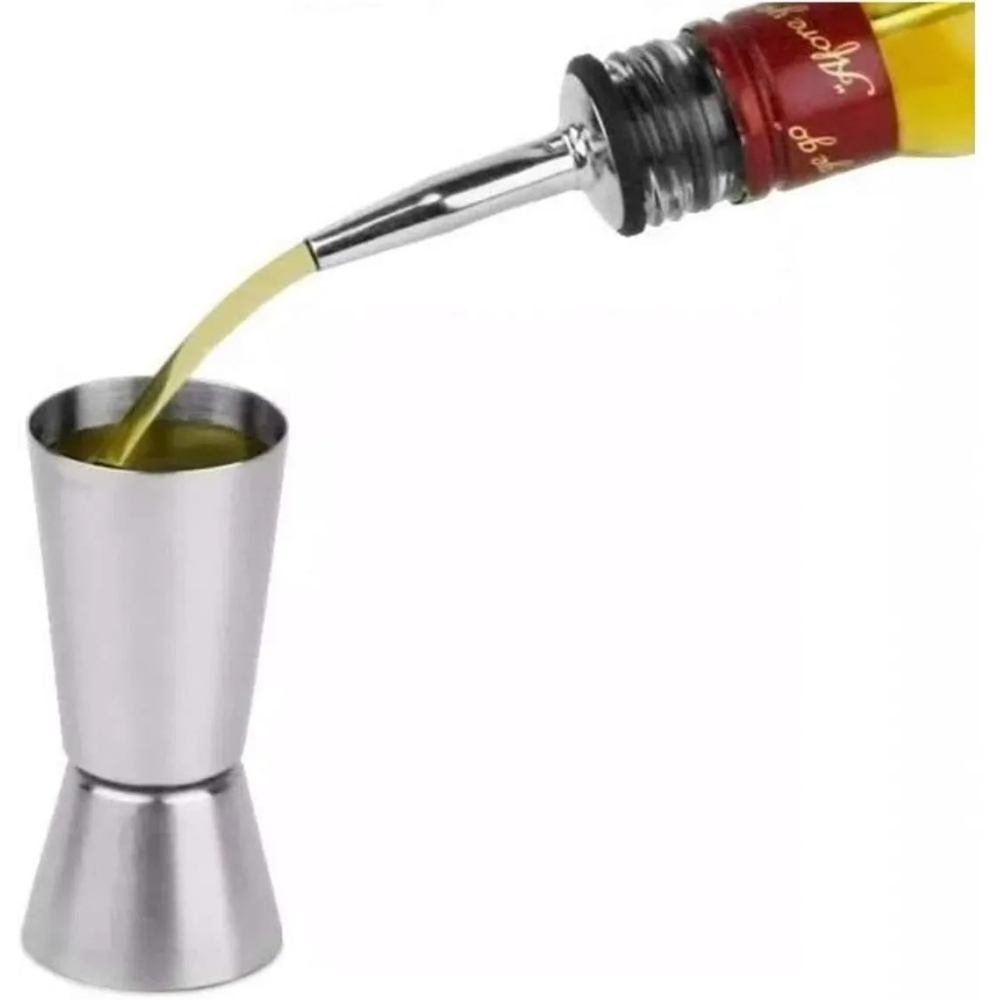 O Dosador em Inox é moderno e elegante. Com duas medidas, serve para você colocar a bebida na medida certa e alcançar o sabor desejado daquele seu drink favorito. Um drink de vez em quando não faz mal a ninguém... Mesmo que você não goste, um dia pode precisar servir algo em casa, nem que seja para amigos ou familiares. O dosador de bebidas é muito útil para o preparo de drinks, e é um dos acessórios essenciais em qualquer bar. As bebidas preparadas sem um dosador correm o risco de ficarem fortes demais ou muito diferentes daquela receita clássica. O Dosador possui 2 cubas, uma maior e uma menor que medem respectivamente: 50ml e 25ml, o que facilita o preparo dos drinks. Feito em Aço Inoxidável, ele é muito resistente e tem acabamento impecável. Seu formato elegante e sua cor brilhante fazem dele um adorno a mais para o seu bar.