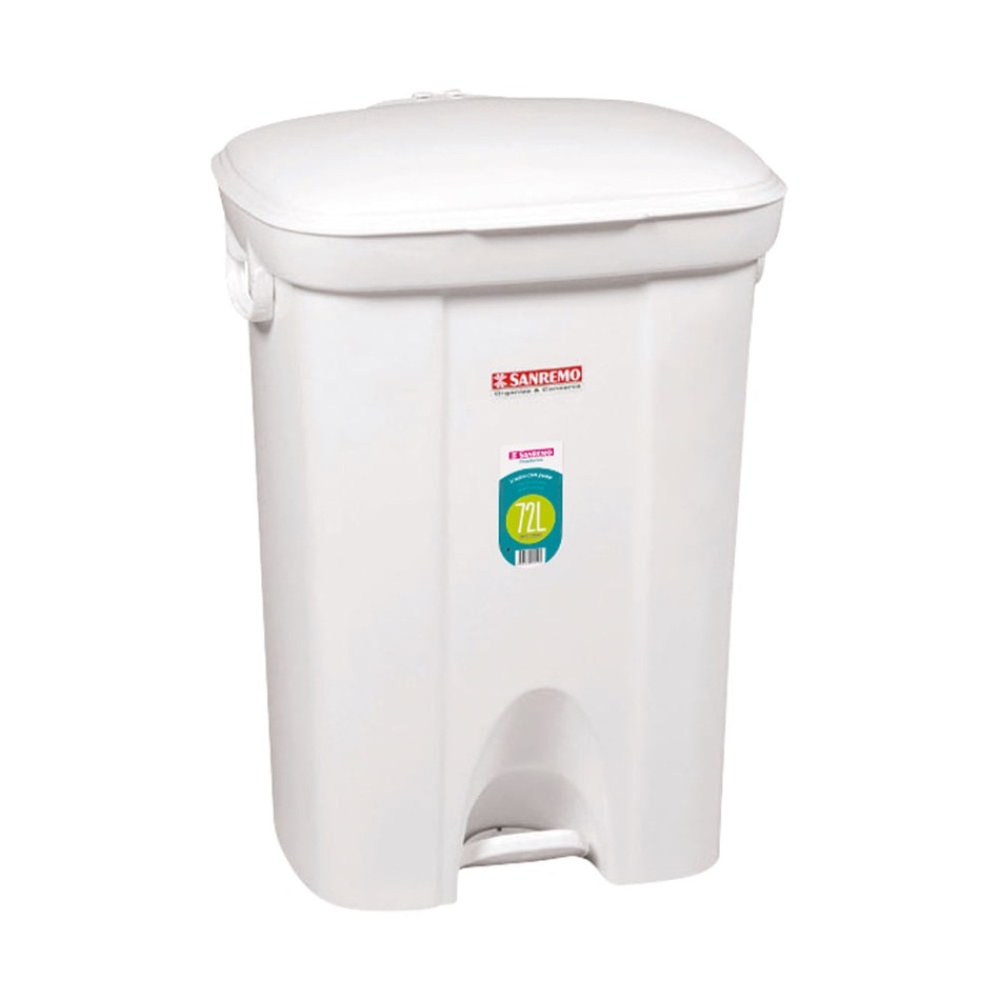 Lixeira Plastica C/Pedal 72lt Quadrada Branca Sanremo - Multi Utilidades