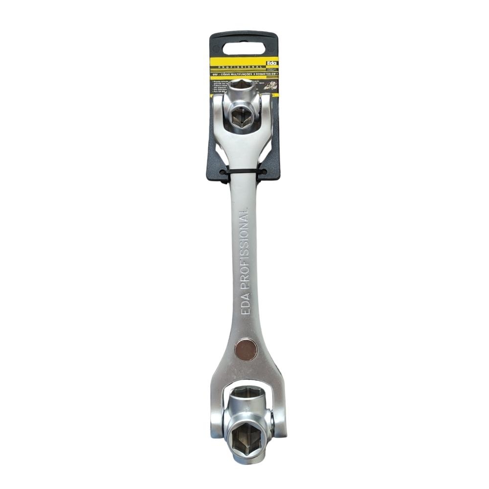 A ferramenta perfeita para simplificar suas tarefas diárias. Feita de aço cromo vanádio para durabilidade, esta chave multifuncional apresenta 8 soquetes diferentes em uma única ferramenta. Com medidas variando de 12 a 19mm, ela é ideal para lidar com uma variedade de parafusos e porcas.