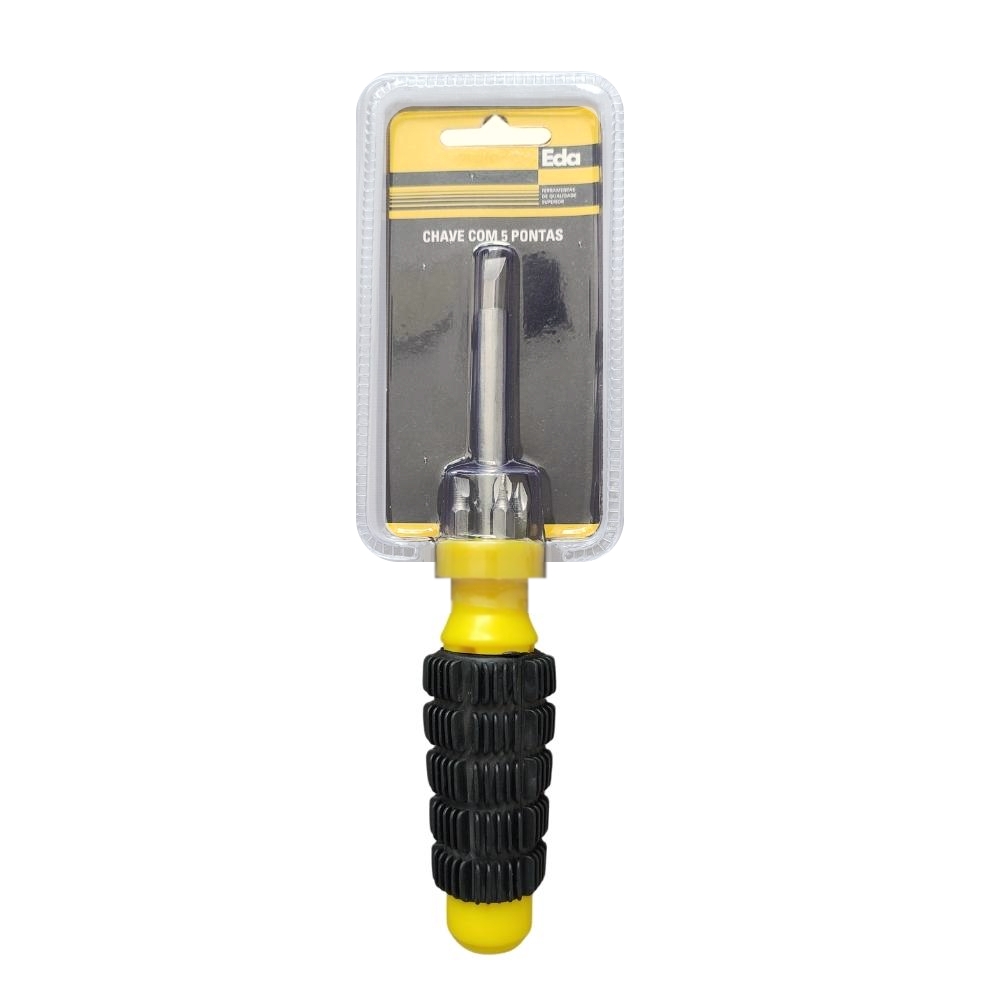Com 3 pontas de fenda (3, 4 e 5 mm) e 2 pontas phillips (PH2 e PH3), esta chave é perfeita para lidar com uma variedade de parafusos em consertos domésticos, montagem de móveis ou projetos de bricolagem. Torne suas tarefas cotidianas mais fáceis e eficientes com a Chave Multifunção 5 Pontas Eda.