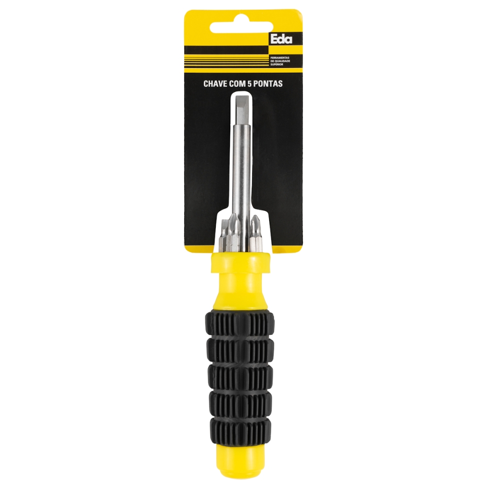 A Chave Multifunção é a escolha prática para facilitar suas tarefas diárias. Com um cabo emborrachado para conforto durante o uso, esta chave multifuncional apresenta um jogo de 5 pontas (bits) para atender às suas necessidades básicas.