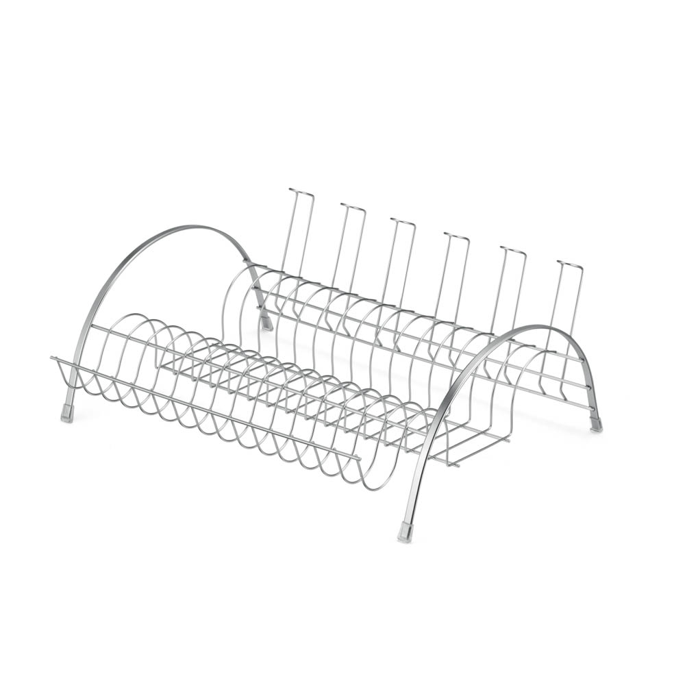 Este escorredor combina funcionalidade e design, oferecendo uma solução elegante e eficiente para a sua cozinha. Seu acabamento cromo fosco não só confere um toque contemporâneo, mas também é mais resistente à corrosão, garantindo durabilidade a longo prazo.