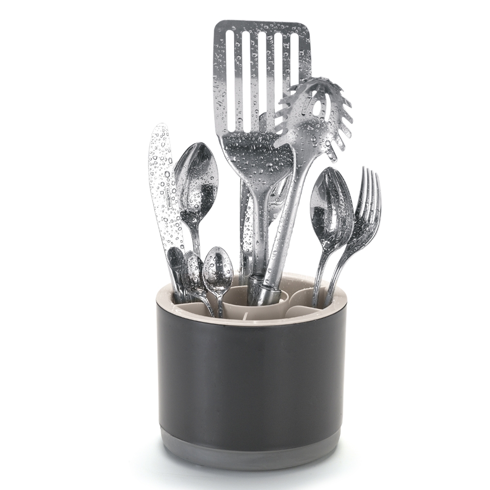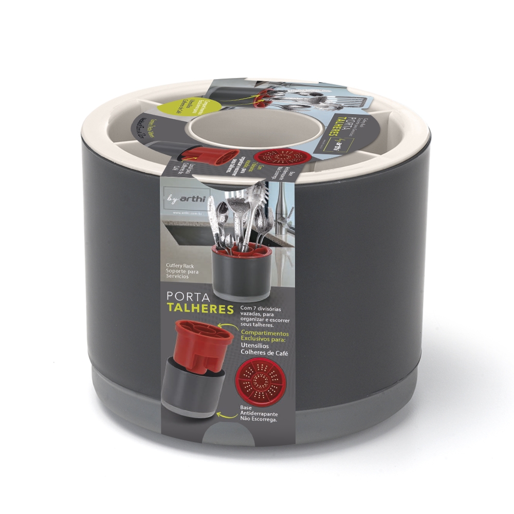 Porta Talheres C/Tampa 7 Divisorias Preto/Cinza Arthi - Multi Utilidades