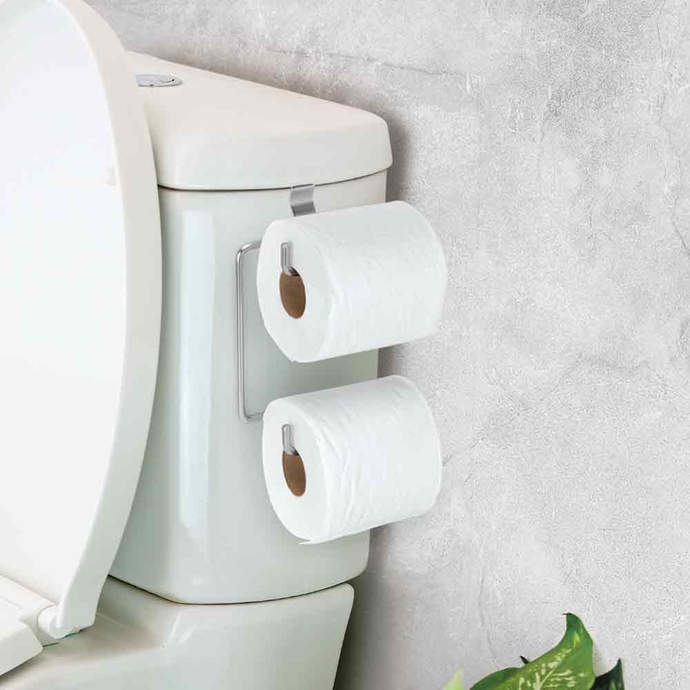 A instalação é simples e eficiente, sendo compatível com caixas acopladas convencionais. Com espaço para dois rolos, este suporte não só mantém o papel higiênico sempre acessível, mas também funciona como um elegante elemento decorativo. Dica: aproveite o segundo suporte para alternar entre papéis de diferentes texturas ou aromas, ou somente para colocar 1 papel reserva.