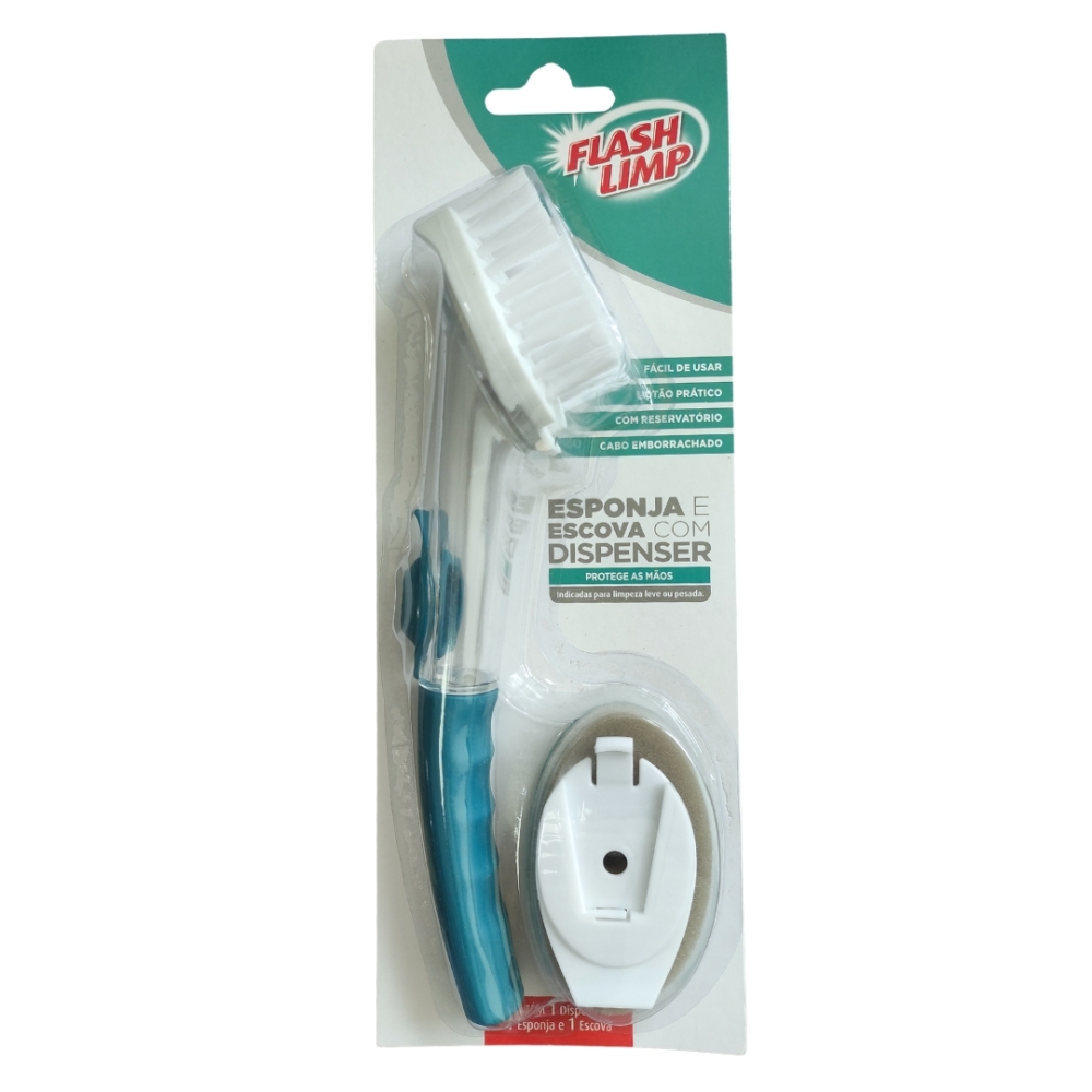 Com o Conjunto de Esponja e Escova com Dispenser da Flash Limp, a limpeza da sua cozinha se torna mais prática e agradável!