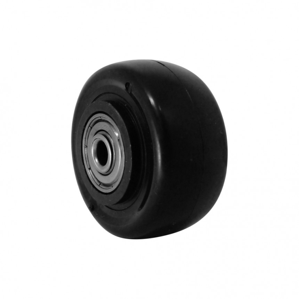 Fabricada com termoplástico e PVC preto, essa roda é um show de resistência, com núcleo de polipropileno preto e um duplo rolamento de esferas que garante uma rodagem suave e silenciosa. Adeus barulhos indesejados!