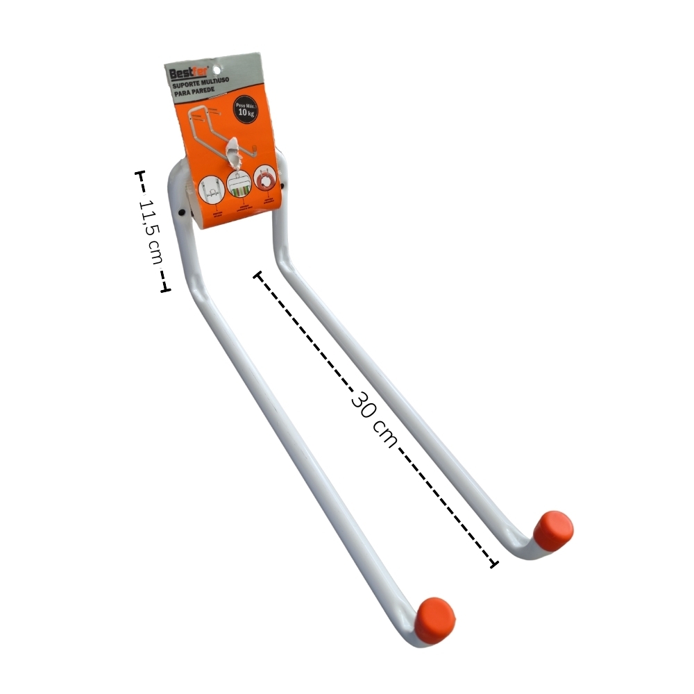 Ideal para manter o ambiente organizado utilizado para pendurar escadas, cadeiras dobráveis de praia, mangueiras, fios e outros.