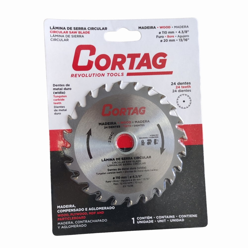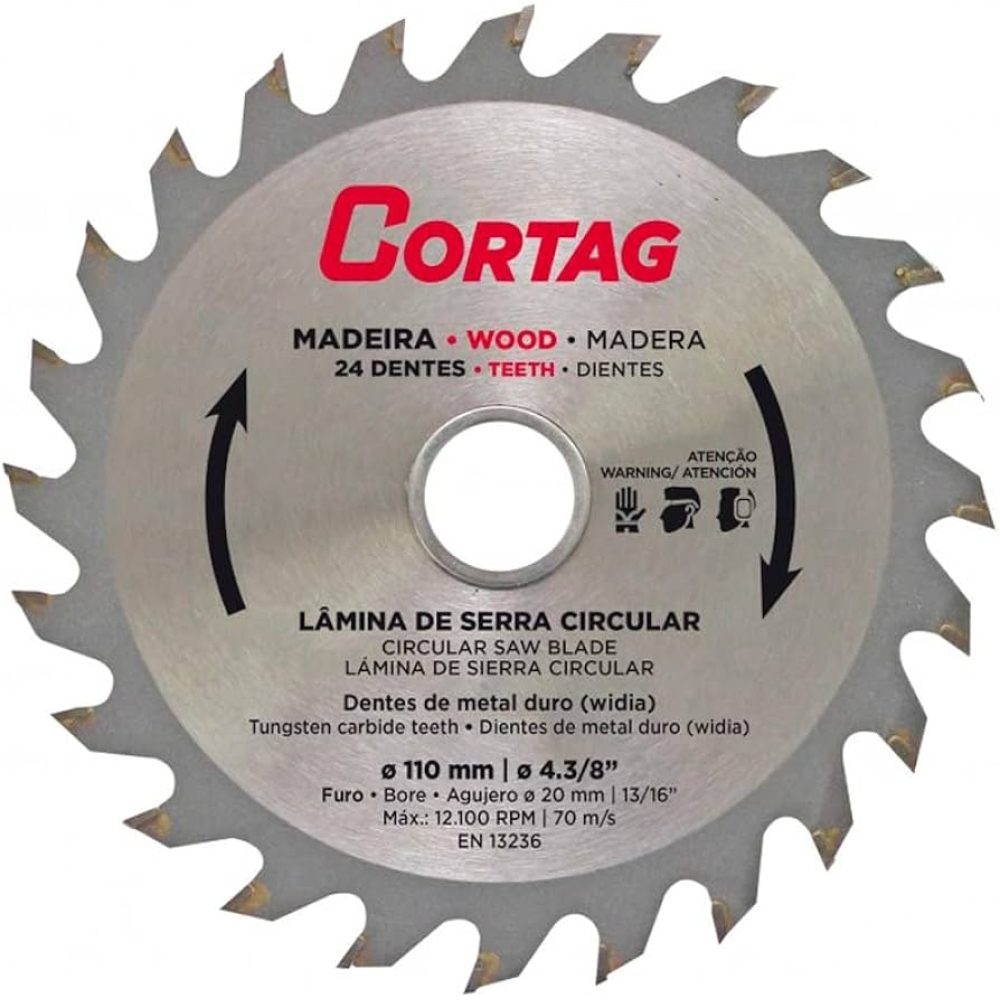 Disco Serra Circular Madeira 24 Dentes 110mm 4.3/8" Cortag - Multi Utilidades