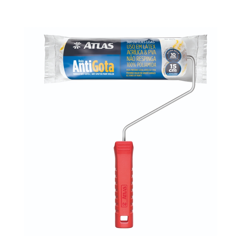 Olha só o truque para uma pintura sem stress! O Rolo Antigotas 15cm Atlas é tipo um super-herói contra respingos. Feito de poliamida, ele segura a onda da tinta, evita sujeira e ainda tem uma manta que dá um acabamento fino, tudo nas superfícies mais lisinhas.