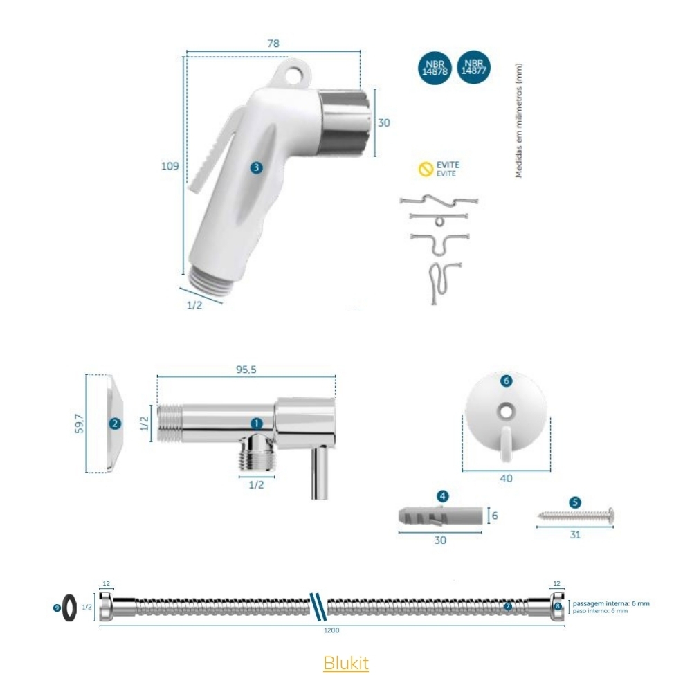 Ducha Higienica 1,20mt Confort Cromado/Branco (220930) Blukit - Multi Utilidades