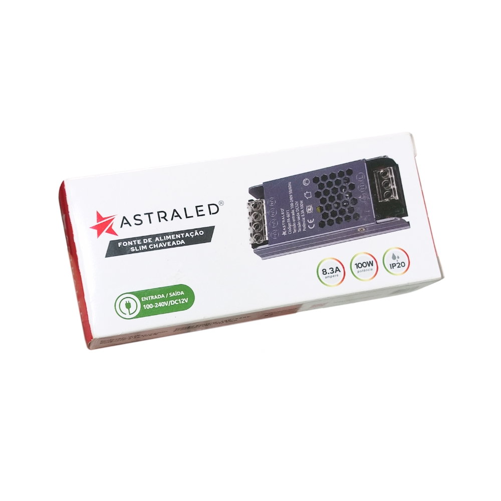 Fonte chaveada Slim 12v 8,3A 100W AstraLed - Multi Utilidades