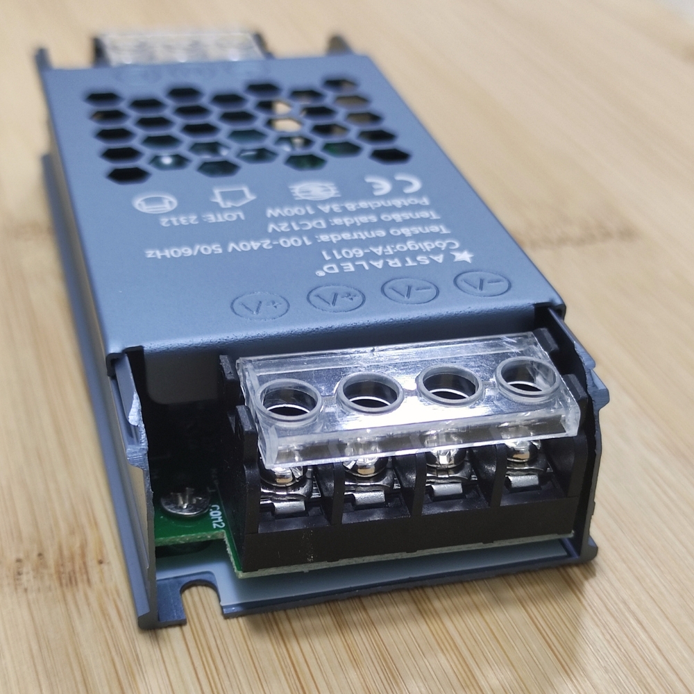 Com uma corrente de 8,3A e potência total de 100W, a Fonte Chaveada Slim da AstraLed garante um desempenho eficiente e contínuo, essencial para projetos de iluminação e outras aplicações eletrônicas. Seu design compacto facilita a instalação, mesmo em espaços reduzidos, e seus conectores bem posicionados permitem uma conexão rápida e segura à rede elétrica e aos dispositivos.