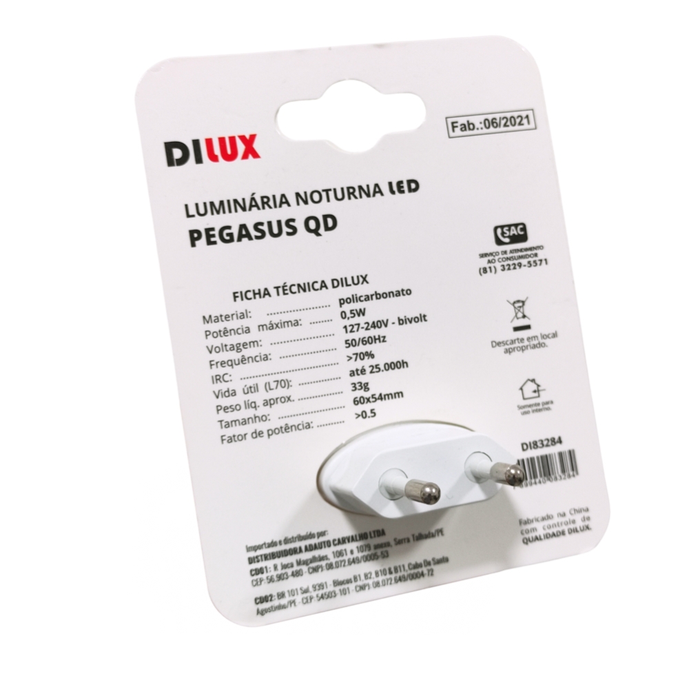 Luz Noturna Led 0,5w Pegasus 3000k Dilux - Multi Utilidades