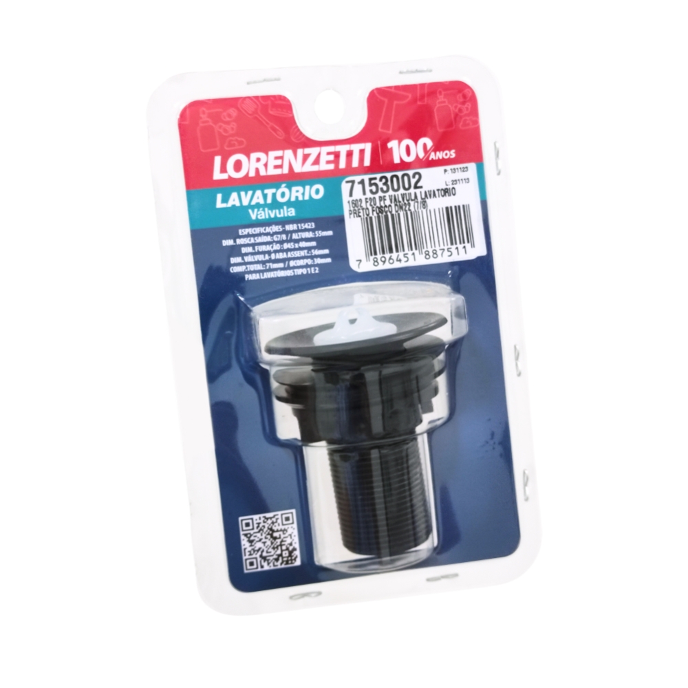 Invista na Válvula para Lavatório de 7/8" Preta da Lorenzetti e desfrute de uma combinação perfeita de praticidade, durabilidade e estilo em seu banheiro.