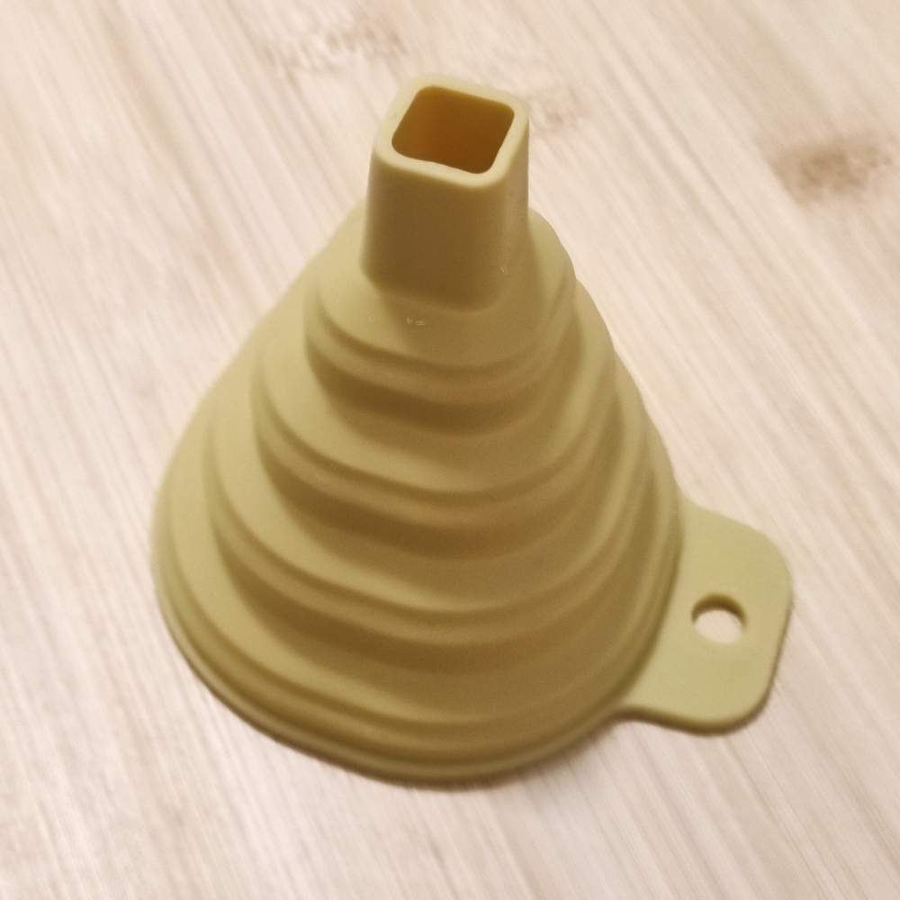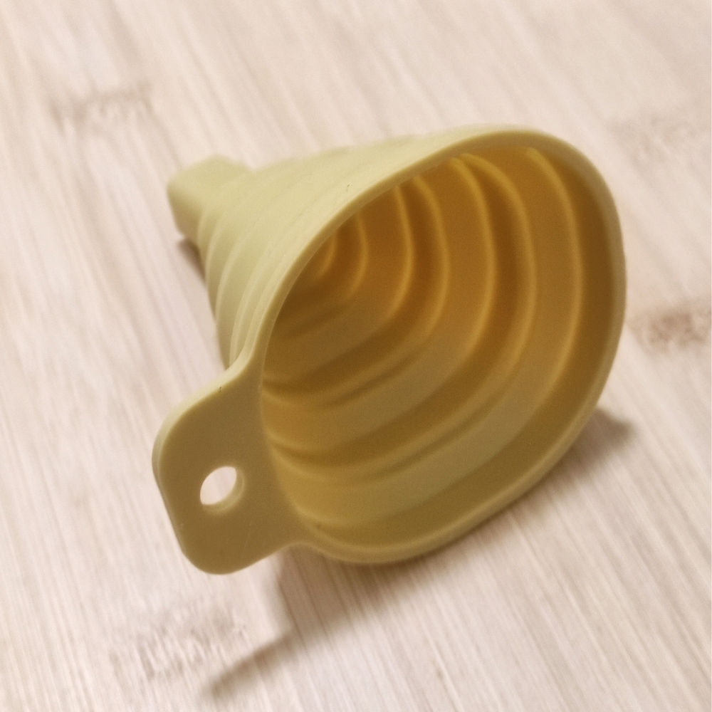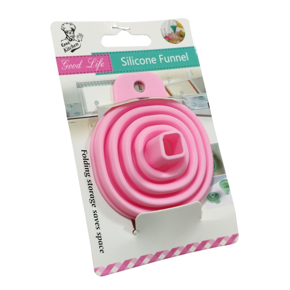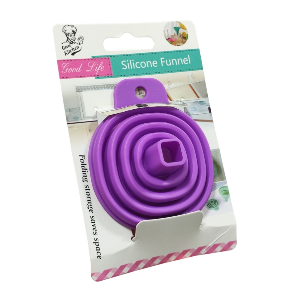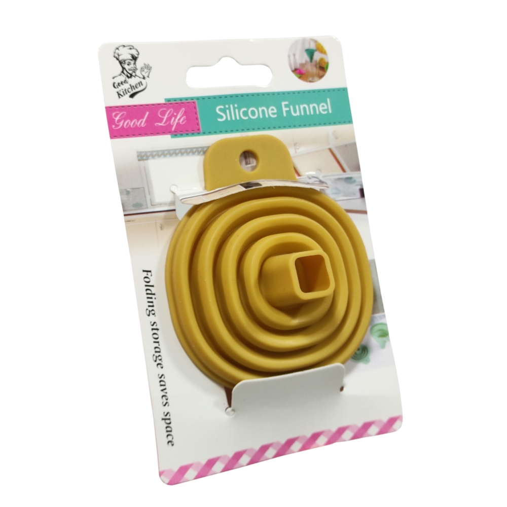 Feito de silicone de alta qualidade, o funil é resistente a altas temperaturas e flexível, garantindo durabilidade e facilidade de uso. Seu design retrátil permite que ele seja dobrado e guardado de forma compacta, ocupando mínimo espaço no seu armário ou gaveta, o que é perfeito para cozinhas com espaço limitado.