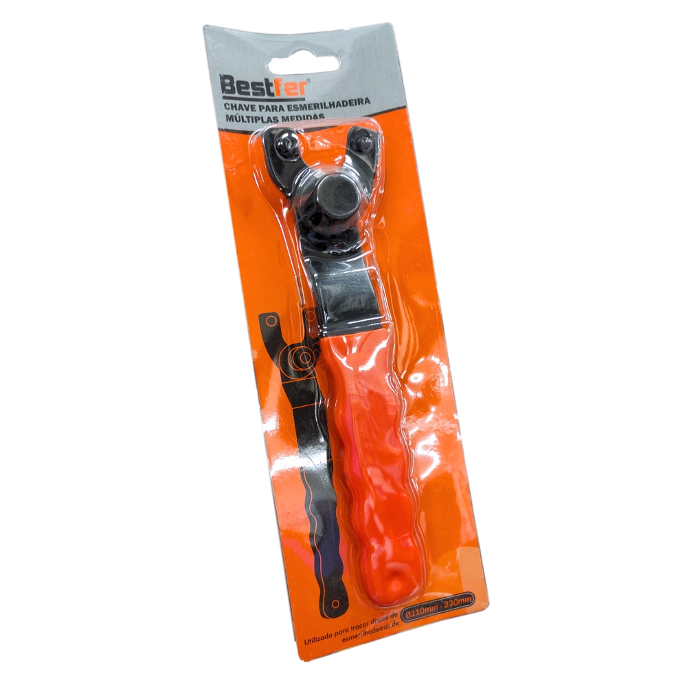 Com um design robusto e ergonômico, essa chave é ideal para ajustar e trocar discos em esmerilhadeiras de diferentes tamanhos, garantindo uma experiência de uso prática e segura.