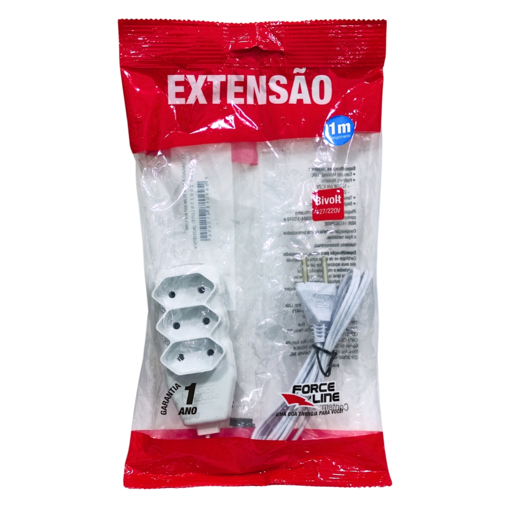 Extensao 1mt 3 Tomadas Pl 2p Br Force Line