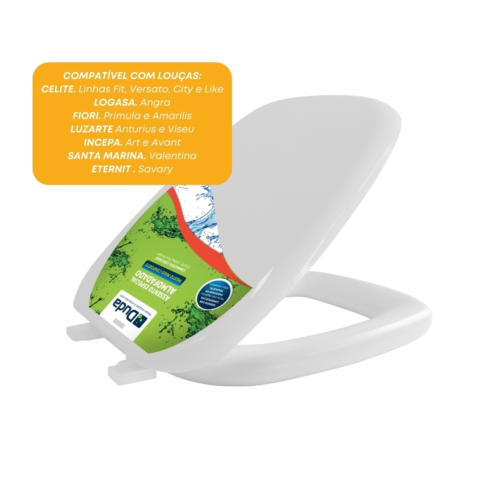 Fácil de instalar e limpar, possui um design clean que se adapta perfeitamente ao seu banheiro. Compatível com as linhas Fit, Versato, City e Like da Celite, além de modelos de outras marcas como Incepa, Fiori, Santa Marina e Eternit.