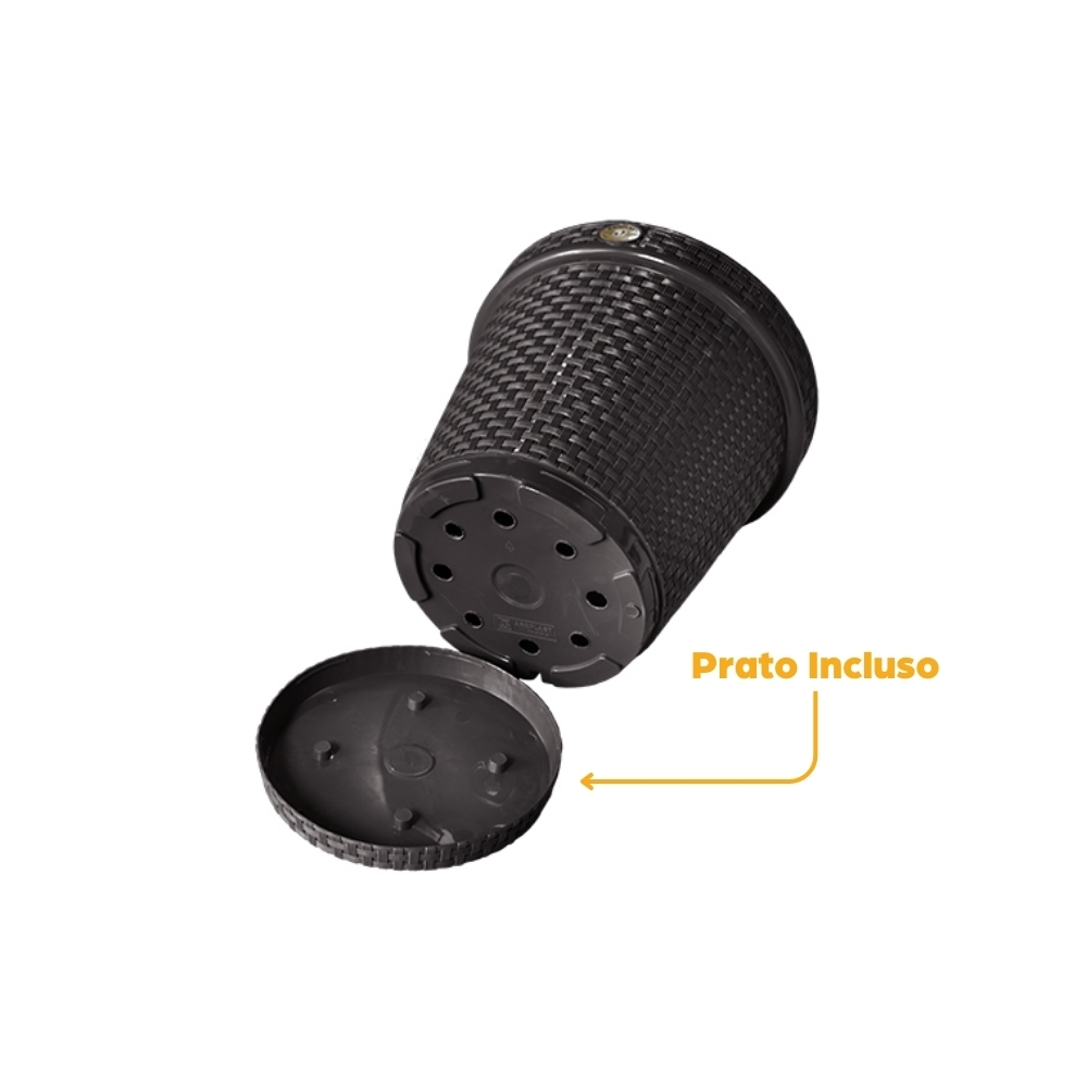 Vaso Redondo Rattan 10lt Preto Arqplast