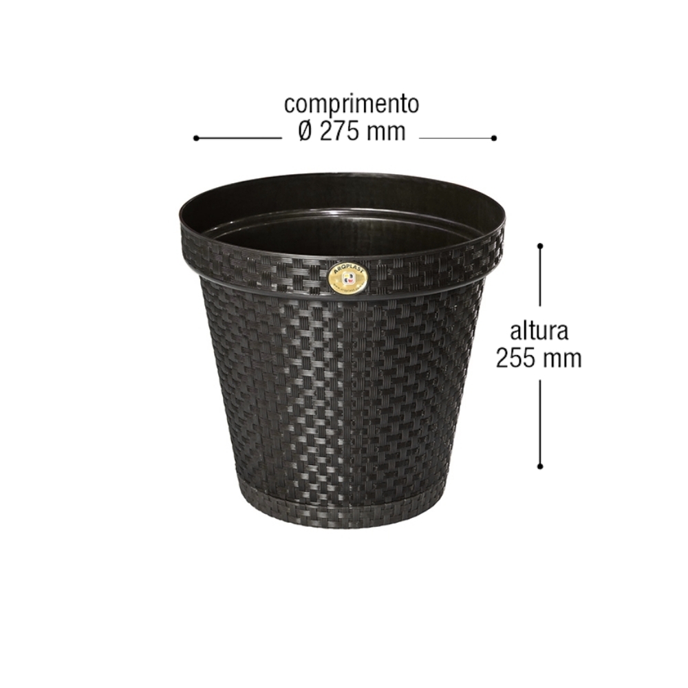 Vaso Redondo Rattan 10lt Preto Arqplast - Multi Utilidades