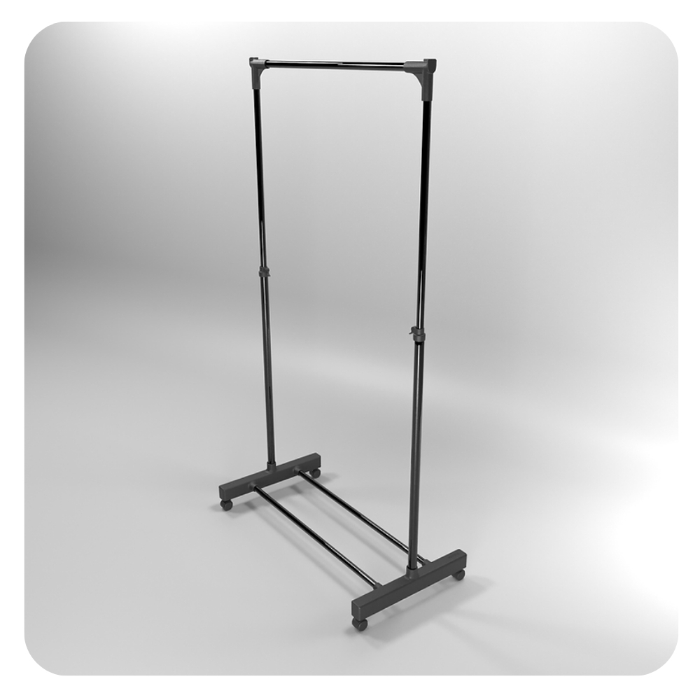 Mantenha suas roupas organizadas e bem arejadas com a Arara de Chão Reta Otimizee Preta Dicarlo. Com estrutura robusta em aço carbono e acabamento em pintura epóxi, ela combina resistência e elegância. Seu design funcional conta com rodízios para fácil movimentação, regulagem de altura para maior praticidade e um suporte adicional para sapatos, otimizando o espaço.