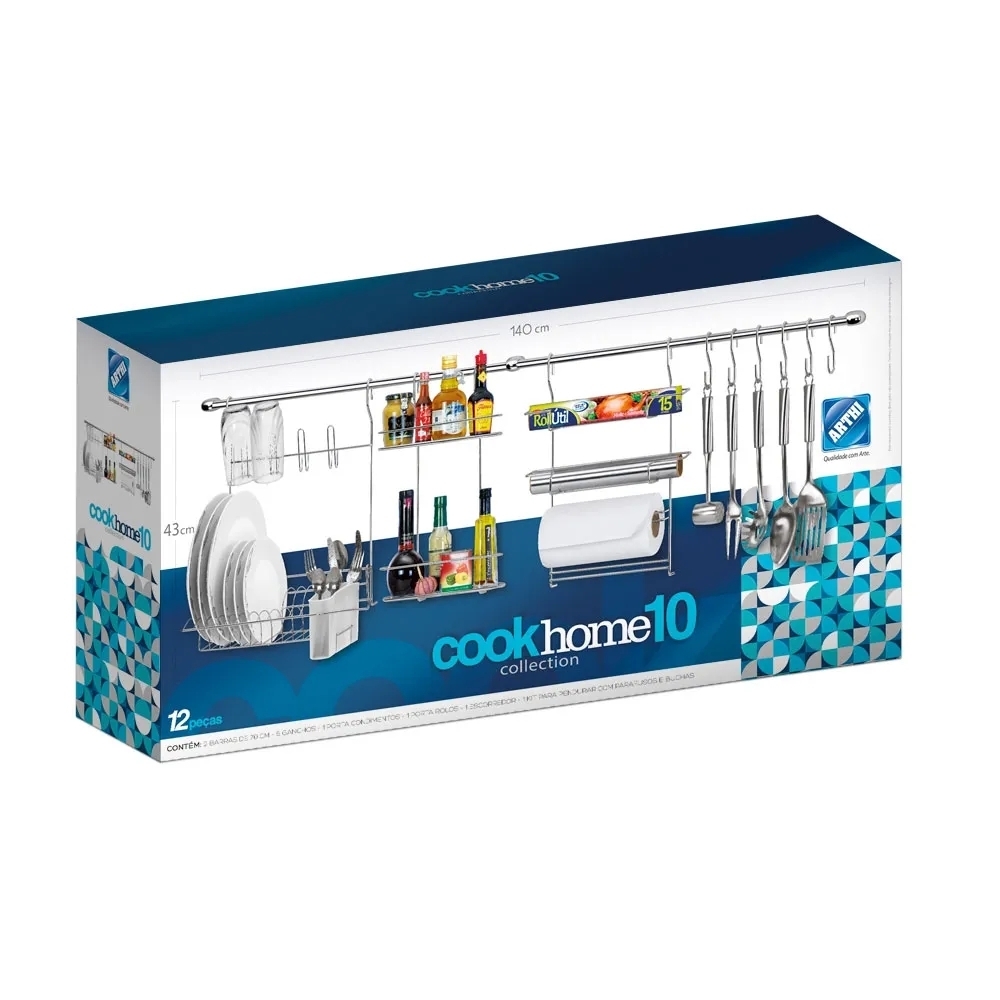 Organize sua cozinha com inteligência e estilo usando o Kit Barras Cook Home Arthi! Este conjunto completo é a solução perfeita para quem busca praticidade e otimização de espaço.