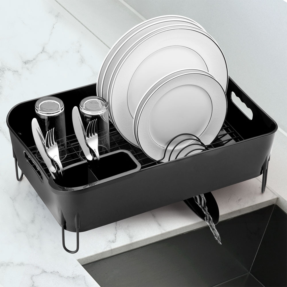 Com um design moderno e elegante na cor preta, ele não é apenas um escorredor, mas um acessório que valoriza o ambiente. É a escolha ideal para quem busca praticidade, durabilidade e um visual impecável, elevando a experiência de cuidar da sua casa. Tenha uma cozinha mais organizada e com um toque de luxo!