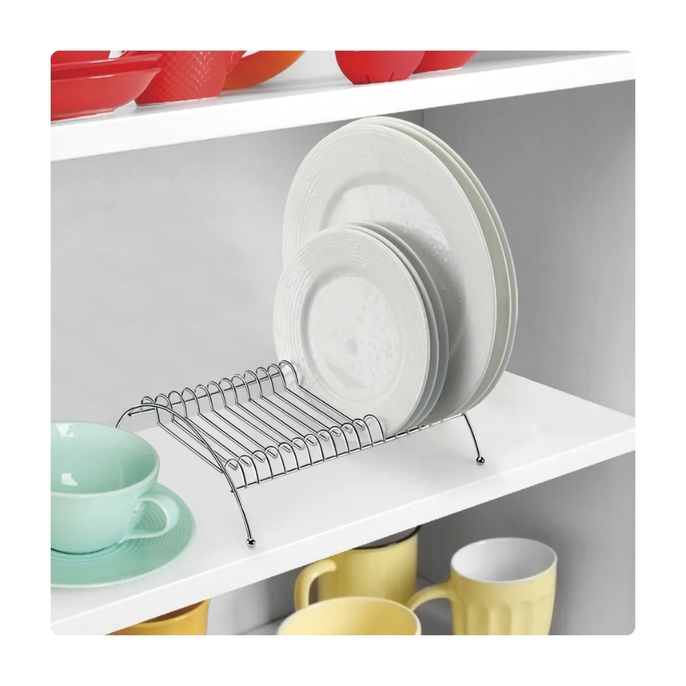 Seu design inteligente em cromado não só oferece durabilidade e resistência, mas também adiciona um toque de modernidade ao seu ambiente. É a escolha perfeita para quem valoriza a organização, a funcionalidade e um visual impecável na cozinha, tornando a rotina de guardar e pegar pratos muito mais simples.