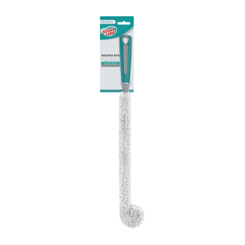 A Escova EVA Flexível é ideal para lavar taças e copos altos, garrafas, mamadeiras e até mesmo locais de difícil acesso. Sua estrutura permite o melhor ajuste à sua necessidade, pois é totalmente flexível. O cabo emborrachado confere maior firmeza durante o uso.