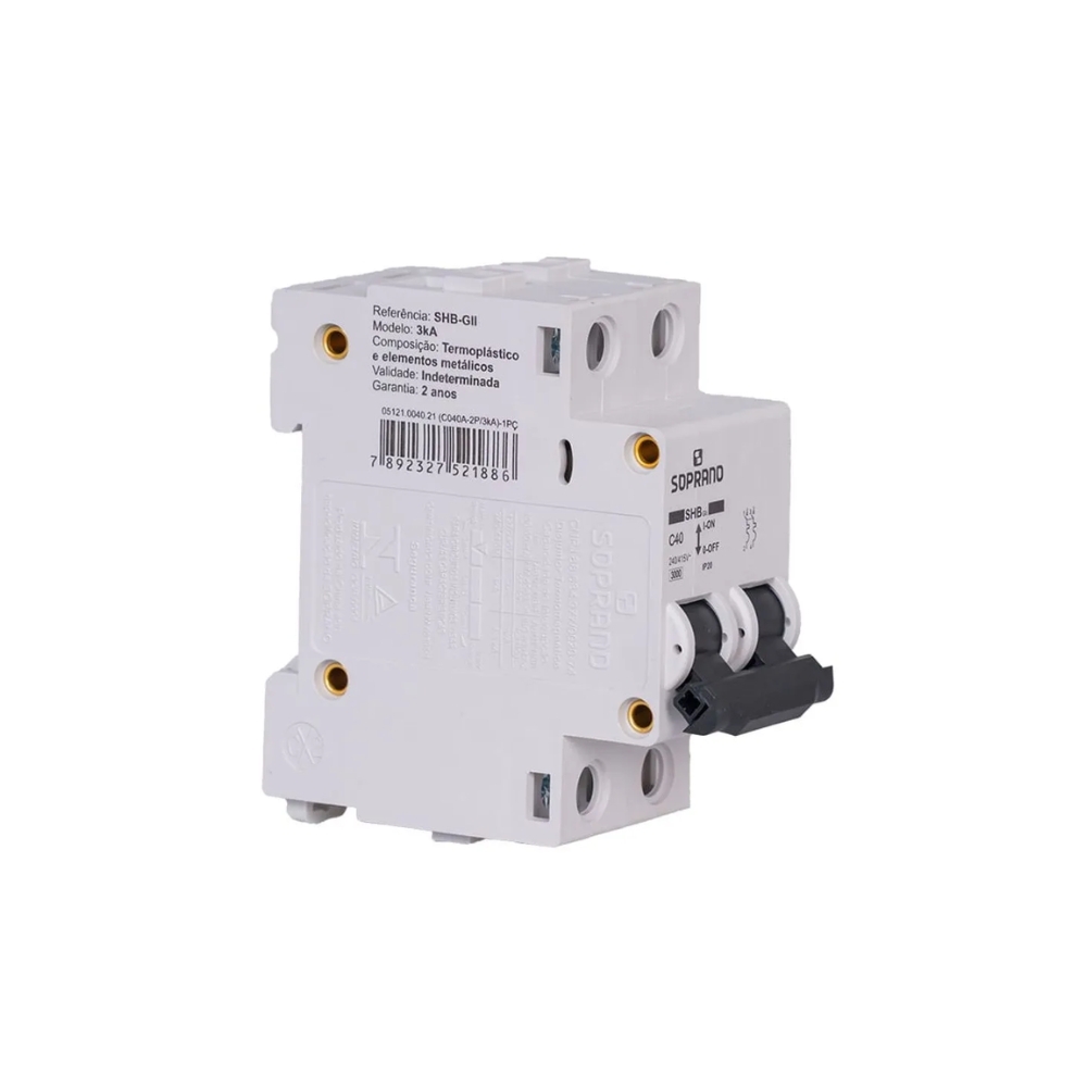 Proteja suas instalações elétricas com segurança e eficiência. O disjuntor bipolar 40A da Soprano é ideal para circuitos que exigem confiabilidade na proteção contra sobrecargas e curtos-circuitos.
