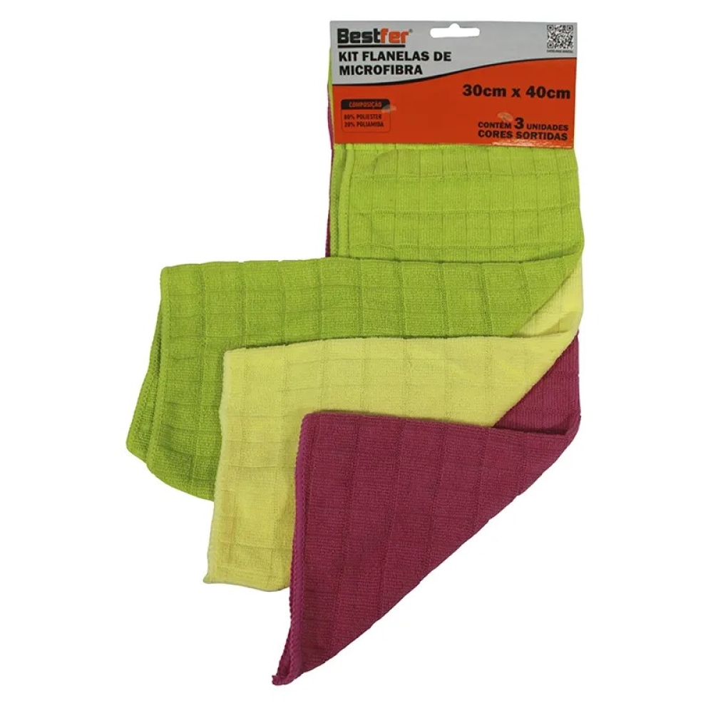 Pano Microfibra 30x40cm 3pçs Bestfer - Multi Utilidades