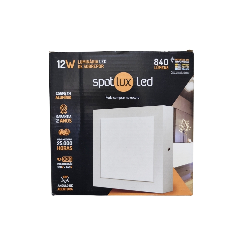 Painel Led 12w Quadrado Sobrepor 6500k Spotlux - Multi Utilidades