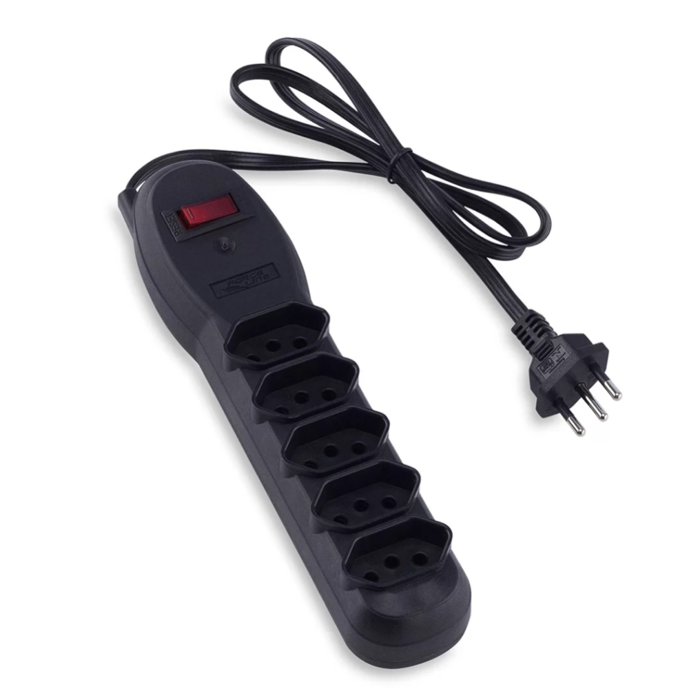 Filtro Linha 5 Tomadas 80cm Slim Preto Force Line - Multi Utilidades