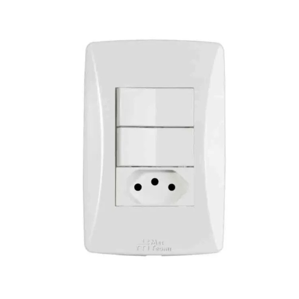 Interruptor Simples 2 Teclas + Tomada 10a Petra - Multi Utilidades
