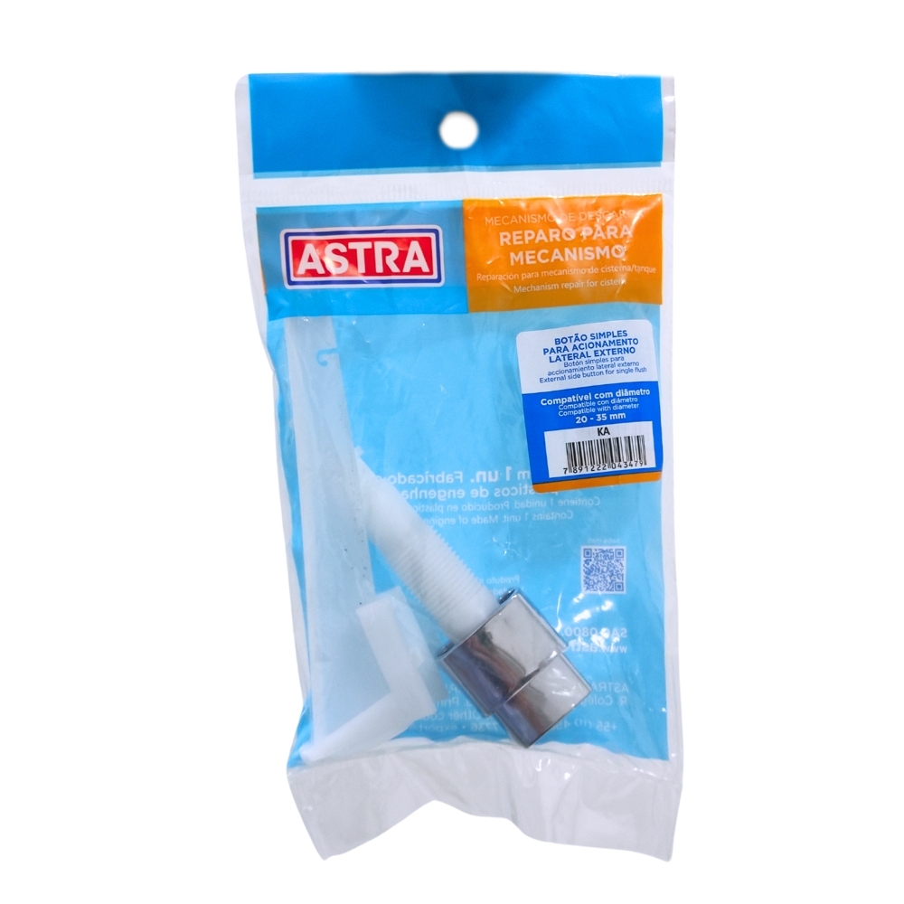 Compatível com caixas acopladas com acionamento lateral, e que possuem orifício com medida entre 20 e 35mm, o Botão Acionamento para Caixa Acoplada Lateral da Astra é a escolha ideal para quem busca um produto de qualidade, resistência e durabilidade. Adquira já o seu e tenha um banheiro moderno e funcional.