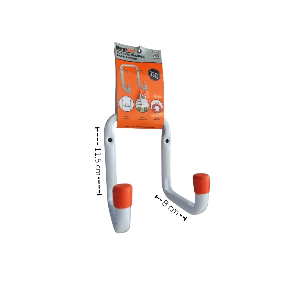 Ideal para manter o ambiente organizado utilizado para pendurar escadas, cadeiras dobráveis de praia, mangueiras, fios e outros.