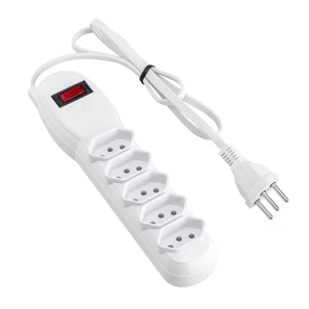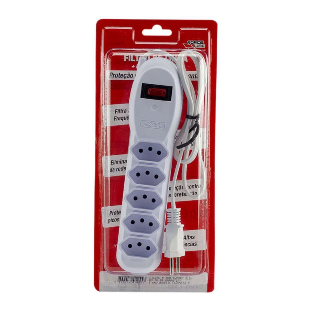 Filtro Linha 5 Tomadas 80cm Slim Branco Force Line - Multi Utilidades